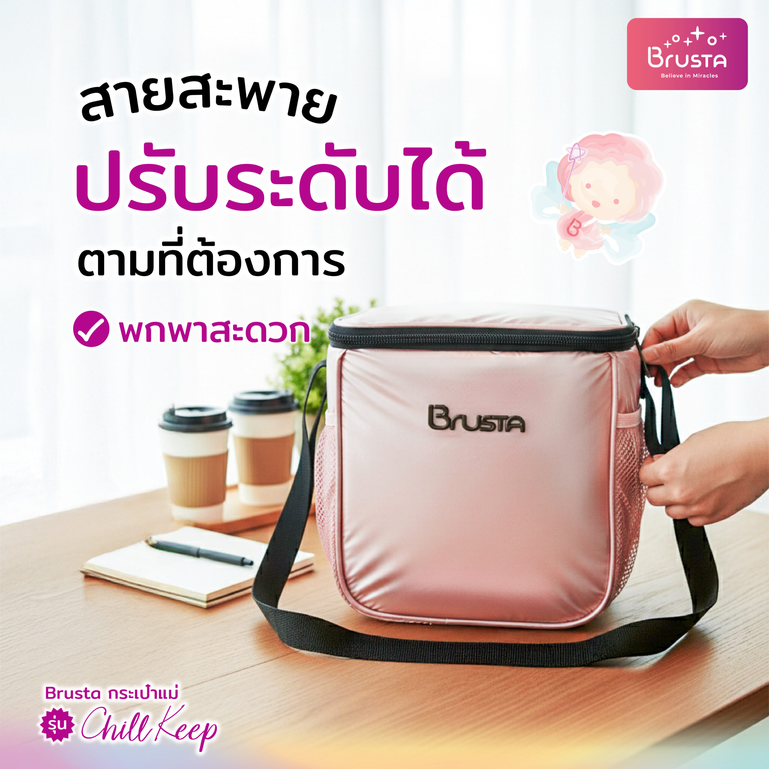 - สายสะพายปรับระดับได้ตามต้องการ พกพาสะดวก
