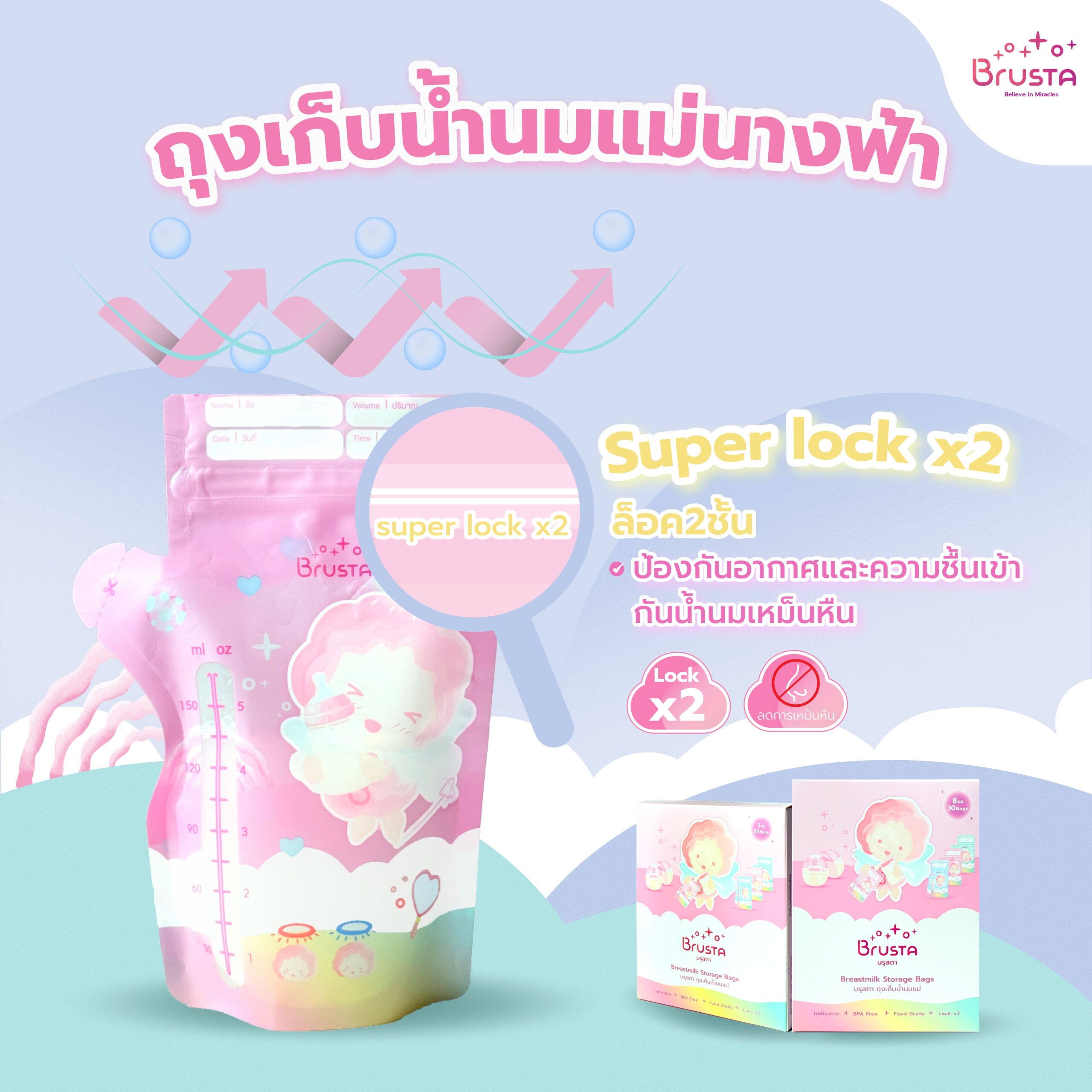 – ถุงหนา มั่นใจด้วย Super Lock 2 ชั้น ป้องกันอากาศและความชื้นเข้า กันน้ำนมเหม็นหืน